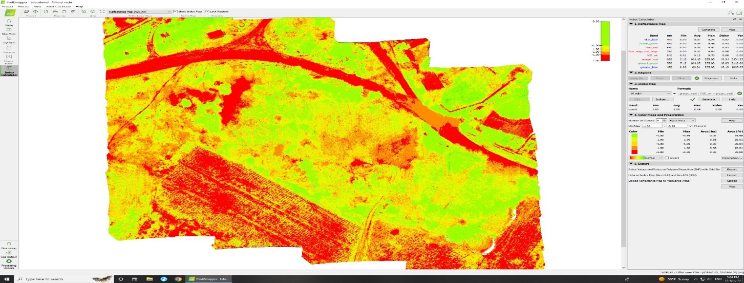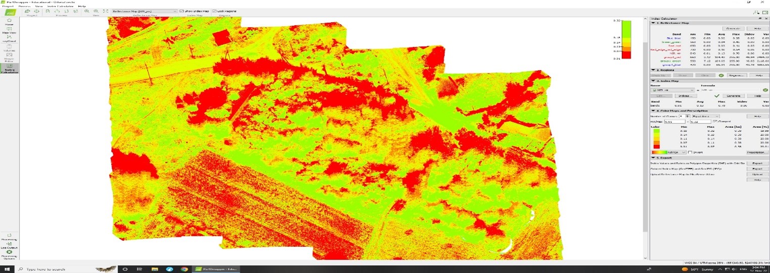 Determinarea indicelui NDVI (Normalized difference vegetation index) cu ajutorul camerei multispectrale a aparatului de zbor DJI Phantom multispectral